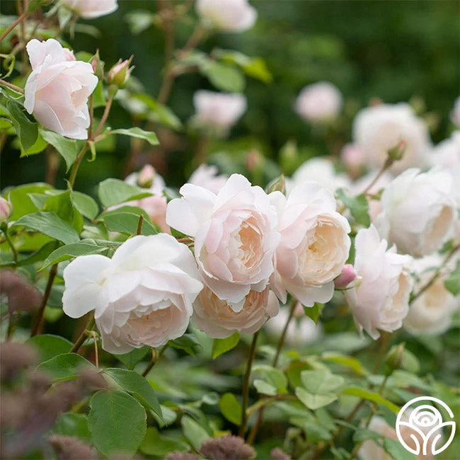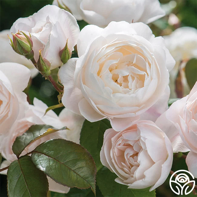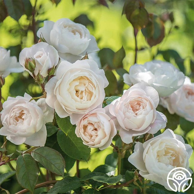 NEW INTRODUCTION 2023! Desdemona opens with peachy pink buds that gracefully reveal beautiful, chalice-shaped blooms in a white hue, tinged with a soft pink blush. These unique, incurved petals create a captivating interplay of light and shadow.