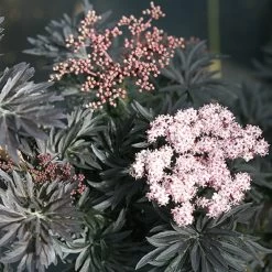 You’ve never seen an elderberry like Strait-Laced™ before: it combines a striking fastigiate habit with lacy, near-black foliage. The effect is something like a flock of birds taking flight. Pink flowers in early summer turn to black fruit if a pollinator (like Black Lace or Black Beauty elderberry) is planted nearby.