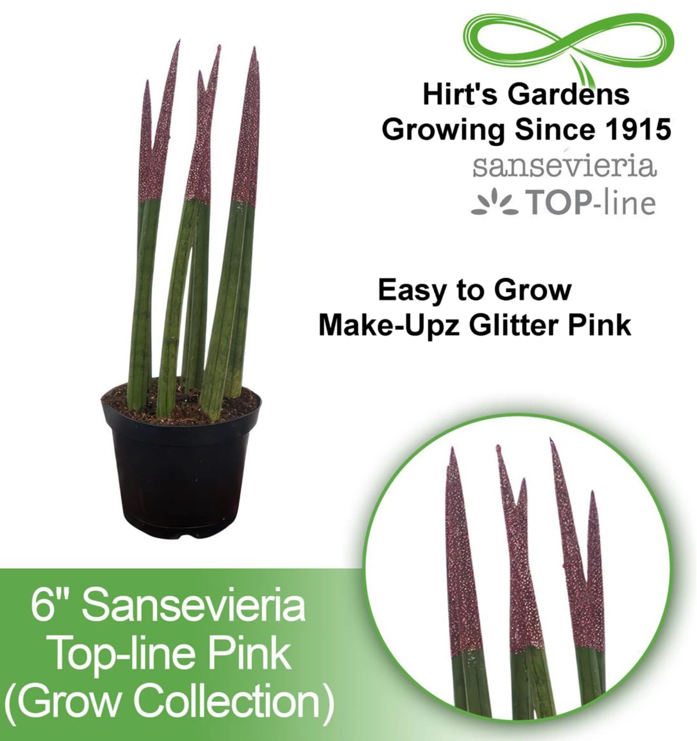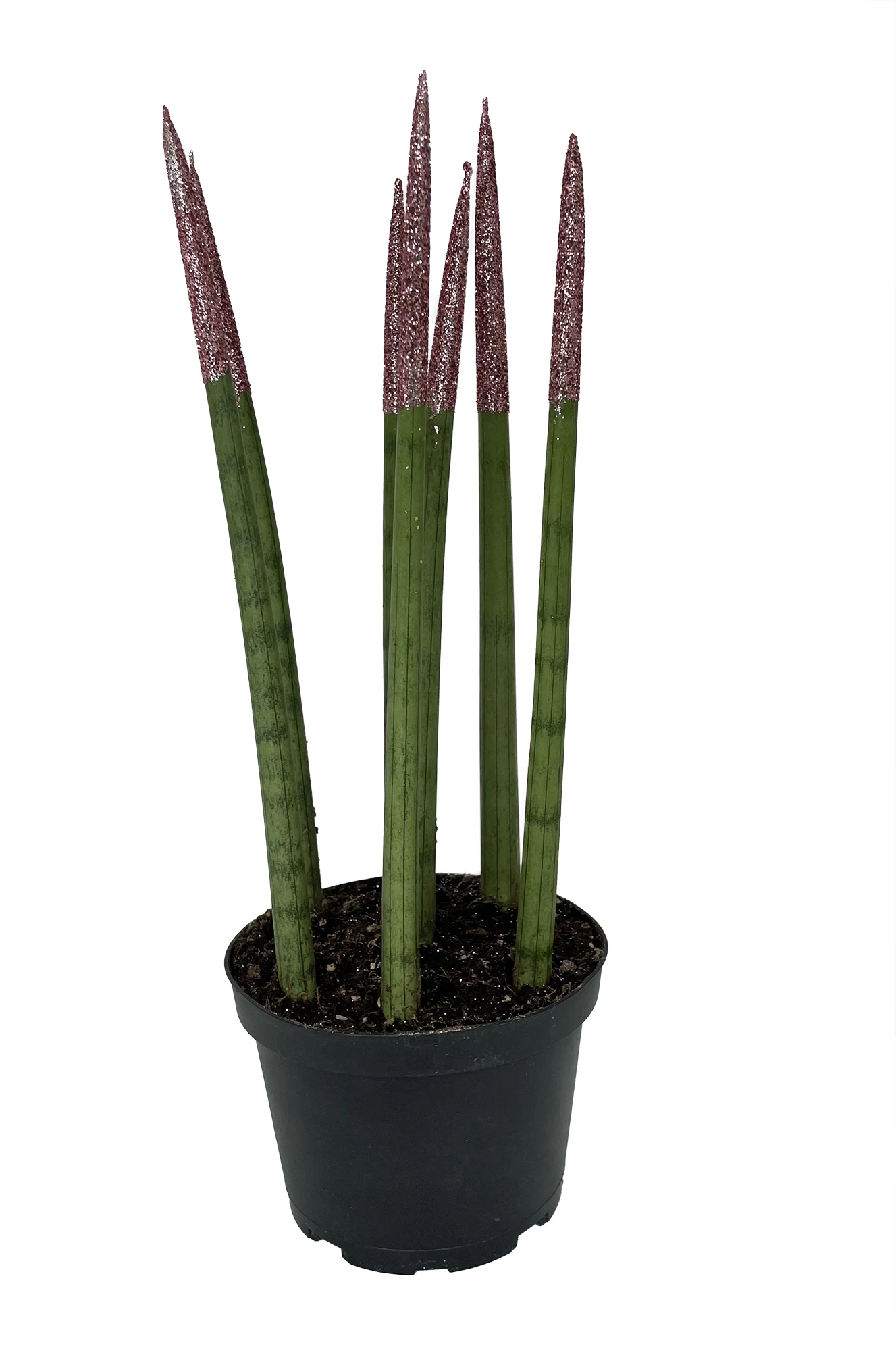 New! Top-Line Make-Upz Snake Plant Sansevieria Collection. These plants are unlike any other, with a unique touch of bio-degradable glitters that make them a real eye-catcher. This new product line features a variety of Sansevieria plants, each with its own distinct leaf patterns and colors, and all with the added touch of eco-friendly glitter. The glitter adds a unique and playful element to the plants, making them perfect for adding some personality to any space. The plants can be combined with various types of pots.