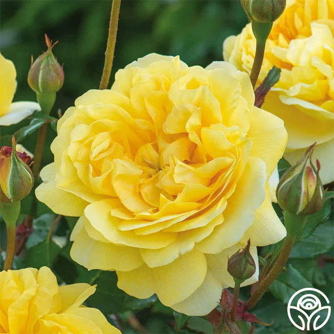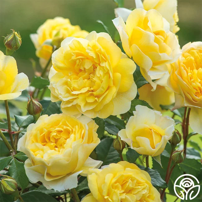 STRONG FRAGRANCE! The Poet’s Wife is a fantastic rose with flowers of intense yellow. She has a beautifully cupped form with a neat outer ring of petals enclosing an informal group of petals within that exude a rich, lemon fragrance that becomes stronger with age. The Poet’s Wife forms a naturally arching shrub that is perfect for use in a traditional rose border or for blending with other plants in a mixed border. We recommend her also for cutting gardens and pots. Expect her to grow to about 4’ by 4’.